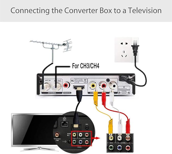 Amazon Com Atsc Digital Converter Box Free Analog Ch3 Ch4 Receiver Atsc Tuner Tv Box Media Player Bundle 30 Mile Flat Uhf Vhf Digital Tv Indoor Antenna Hdmi Cable Recording Pvr Coaxial Out